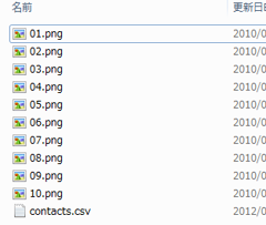 | contacts.csv | csvファイル - ファイル名は必ず contacts.csv にして下さい |