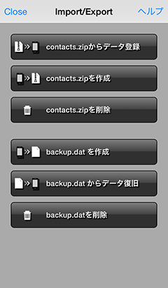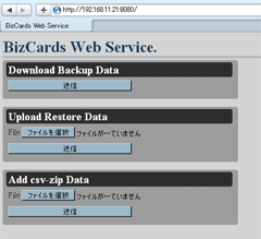 データの一括追加やバックアップを行うことができます。