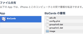 BizCardsの書類項目に「contacts.csv」もしくは「backup.dat」があるので、
