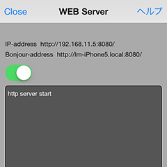 なお、サーバー機能はこの画面が表示されている時のみ有効です。